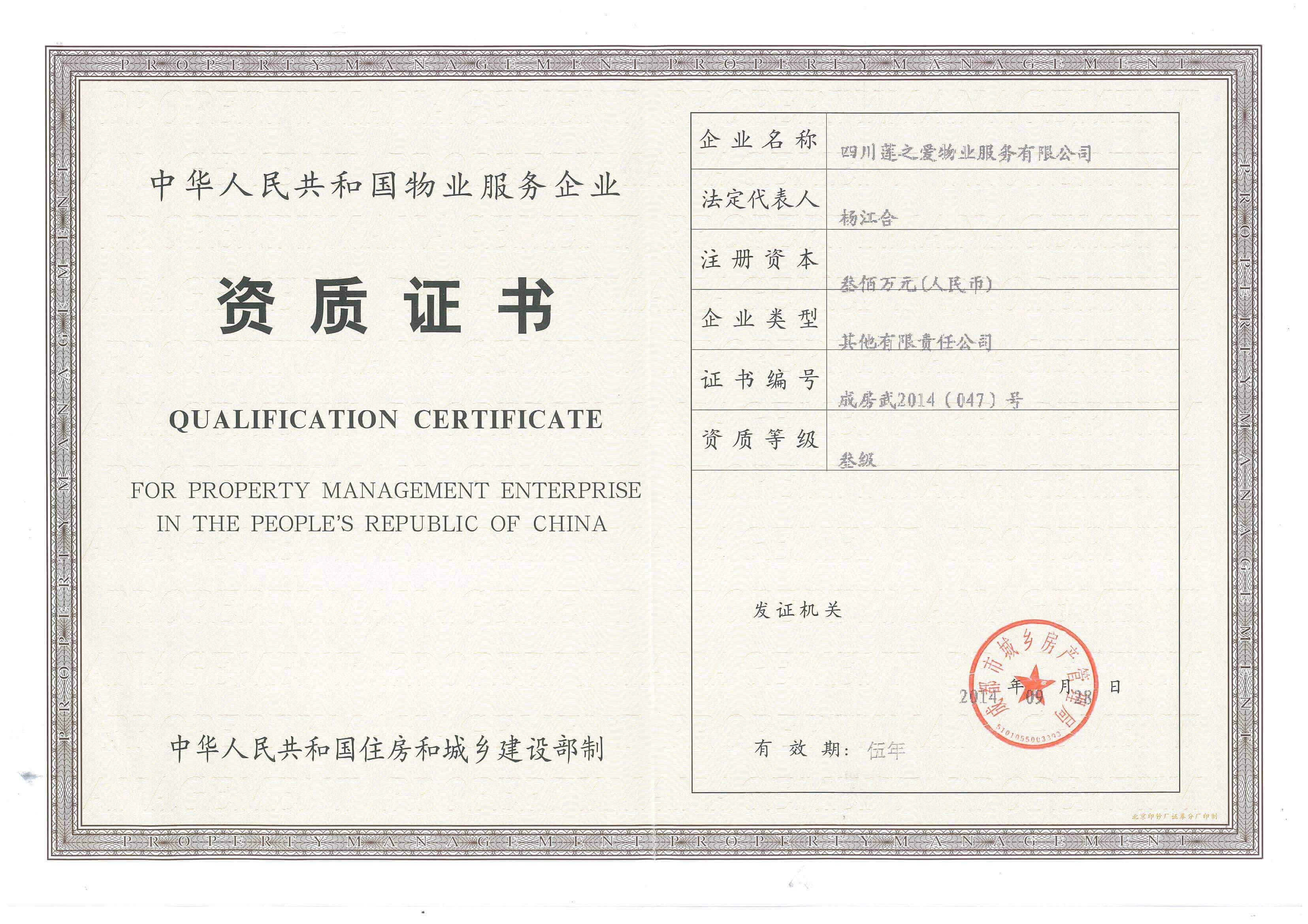 物業(yè)公司資質(zhì)證書(正)